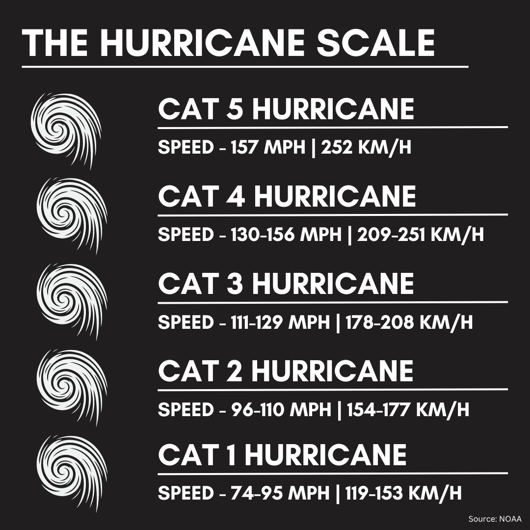 As per this scale, any hurricane with more than 157 MPH or 252 KM/h is a category five hurricane.