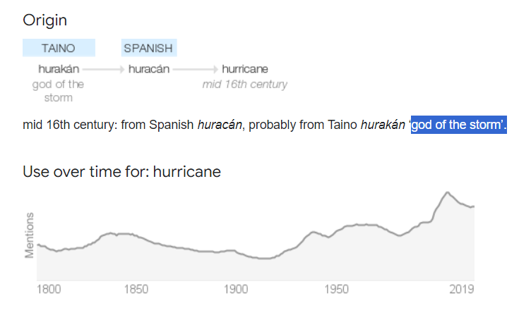 The word hurricane finds its origin in the Taino word Hurakan which roughly translates to the ‘God of Storm’.